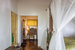 One of the most exclusive suites at Te Aroha, this expansive guest room is located in the old wing which was once the summer house of the owners. It comprises of a large bedroom with an early 19th century king-size bed, a spacious living room with spellbinding views of Dhanachuli’s landscape and the snow-peaked mountains, a private garden, a cosy study area and a spacious bathroom. The guestroom derives its name from the fact that it once served as the original owner’s master bedroom.